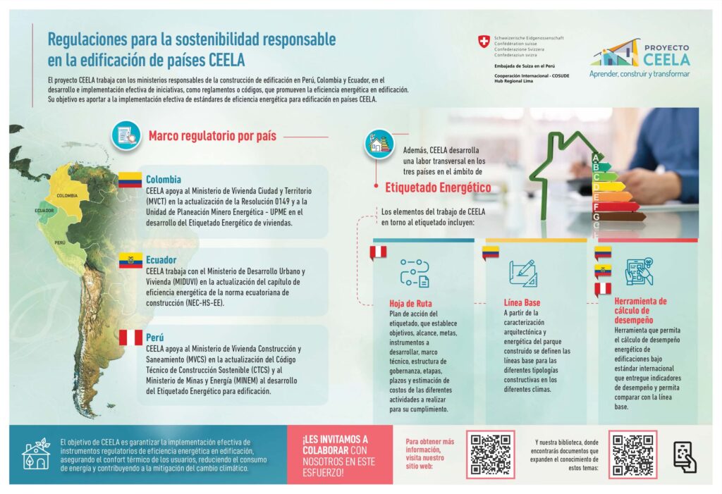 Los avances regulatorios en Perú, Ecuador y Colombia son un reflejo del compromiso de estos países con la construcción sostenible y la mitigación del cambio climático. El proyecto CEELA, busca ser un aliado para fortalecer sus marcos normativos y capacidades técnicas, acciones esenciales para garantizar que el sector de la construcción tenga menos emisiones de carbono, sea más eficiente energéticamente y aporte al confort ambiental de sus usuarios.
